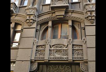 The architect of the building was Morten F. Ronnow, from Denmark, following the Jugendstil style (German Art Noveau). He was also the architec tin charge of the building of the Danish Church in San Telmo.What really strikes are the eight Atlas who appear to be holdings the building on their backs. Each has a different face which correspond to the workers who were involved in the building, including its architect.
