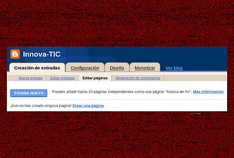 Hace poco que blogger nos ofrece una nueva funcionalidad, el "Editar páginas", podéis verlo arriba en la imagen que he capturado de mi blog (clic para ampliar la imagen).