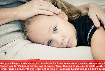 A Sandra siempre le ha gustado ir al colegio, pero desde hace dos semanas su mamá intuye que no quiere ir, que algo ha pasado y que la niña busca mil excusas para ausentarse. Cuando no dice que le duele la cabeza se hace tomar la temperatura o argumenta que le duele la barriga o... La madre ha preguntado a Sandra si ha ocurrido algo en la escuela pero la niña una y otra vez ha dicho que no. Sandra no ha faltado, así, ni un día a clase, pero su mamá se da cuenta de que está triste y muy mimosa y no sabe que hacer. ¿Debe dejarla en casa unos días? ¿La sigue obligando a asistir a la escuela? ¿Tú que piensas?