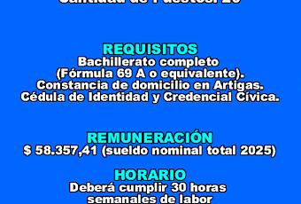 📋 Requisitos Excluyentes:Bachillerato completo (Fórmula 69 A o equivalente).Constancia de domicilio en Artigas.Cédula de Identidad y Credencial Cívica.