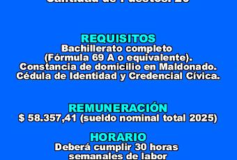 📋 Requisitos Excluyentes:Bachillerato completo (Fórmula 69 A o equivalente).Constancia de domicilio en Maldonado.Cédula de Identidad y Credencial Cívica.