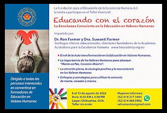 El taller vivencial internacional es gratuito y está dirigido a Maestros, estudiantes de educación, padres de familia y todos aquellos interesados en convertirse en formadores de Educación en Valores Humanos.