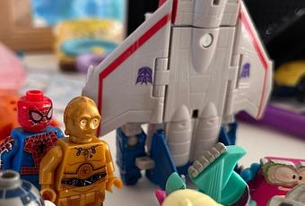 No suele pedir el móvil. Si vamos a comer fuera, prefiere pintar o jugar con sus Superthings o con lo que lleve en la mochila.