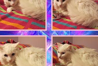 Bolita blanca de algodón, pequeña asustadiza, sordita como buena gatita blanca que eres...