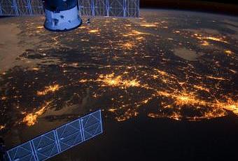 Una Expedición de 30 miembros de la tripulación a bordo de la Estación Espacial Internacional tomó esta fotografía nocturna de gran parte de la costa atlántica de los Estados Unidos.