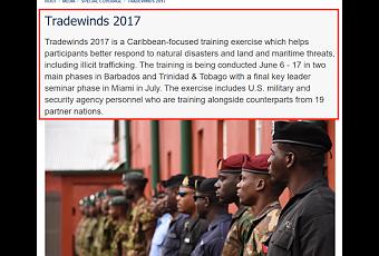 Con los Tradewinds 2017 se invita a "países socios" con el objeto de establecer acciones conjuntas "para contrarrestar el crimen organizado trasnacional, el terrorismo y las operaciones de socorro en casos de desastre". Tal "filantropia" suele ocultar segundas intenciones.