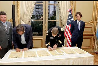 Denuncian que "facultará al Ejército del país del norte a conducir nuestra seguridad interior por sobre el Estado Mayor Conjunto" El ministro de Defensa argentino, Julio Martínez, y el embajador estadounidense, Noah Mamet, firmaron un acuerdo con la Guardia Nacional del Estado norteamericano de Georgia "para brindar asistencia ante catástrofes naturales y ayuda humanitaria".