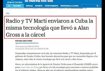 Arthur González.─ Con total desfachatez la prensa oficialista yanqui informó que las ilegales Radio y TV Martí, enviaron a Cuba la misma tecnología de acceso a Internet que introdujo Alan Gross en la Isla; similar a la que la CIA le remitió a su “agente” Raúl Capote y le fuera entregada a mano por un “diplomático” acreditado en La Habana.La publicación asegura que, durante años, el gobierno estadounidense hizo lo mismo a través de la Oficina de Trasmisiones a Cuba (OCB), responsable de las emisoras Radio y TV Martí, creadas para trasmitir informaciones contra la Revolución, a pesar de ser un acto hostil e ilegal que jamás Estados Unidos permitiría le hicieran.