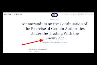 Sin embargo, en el estatuto irracional contra Cuba la Casa Blanca aplica su hipocresía y mentira, pues EE.UU. nunca ha declarado una emergencia nacional con respecto a Cuba y no estamos en medio de un conflicto bélico, pero todos los presidentes desde John F. Kenedy han prorrogado el empleo de esta ley.