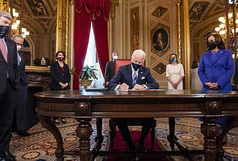 El nuevo presidente firmó las órdenes apenas unas horas después de prestar juramento al cargo en el Capitolio, pasando rápidamente de su ceremonia de inauguración reducida a la promulgación de su agenda.