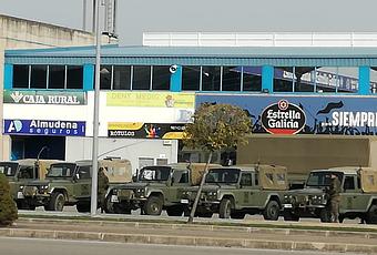 Esta mañana los aparcamientos del Toralín presentan un aspecto inusual, varias unidades de efectivos del Ejercito se encuentran ocupando parte de los aledaños del Estadio Municipal de El Toralín.