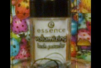 En Chile me compré un polvito específico para esto, que es de Essence, el volumizing lash powder (es el que intenté mostrar en la foto), que es un poco mejor que los sucedáneos, porque tiene más cohesión, no es un polvito suelto así nomás, con lo que se pega mejor a las pestañas. Se aplica con un cepillito igualito al de las máscaras de pestañas. Pero de ninguna manera es imprescindible, con los sustitutos funciona genial.
