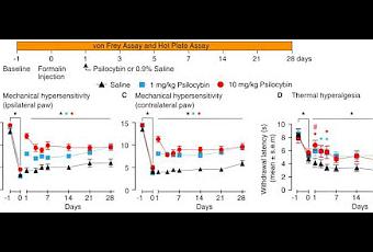 Anestesistas de la Universidad de Michigan y Tryp Therapeutics descubrieron que las ratas experimentaron una reducción del dolor crónico cuando se les administraron inyecciones de psilocibina. El estudio implicó inducir dolor crónico en ratas de laboratorio y tratar a algunas de ellas con inyecciones de psilocibina.