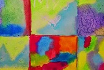Efecto del Rechazo con vela.- Dibujar con una vela los espacios que se deseen dejar en blanco, luego pintar con cualquier color.