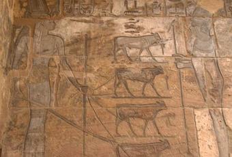 Hay unos relieves con unas escenas de unos escribas que calculan el número de enemigos muertos contando manos y genitales amputados.