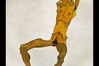 Respecto a la figura humana, primordialmente los desnudos femeninos individuales, aparecen en diversas posiciones: entrelazados, abrazándose, en parejas o a nivel individual, o incluso se dejan ver imágenes de maternidades. De todos modos, suelen ser desnudos provocativos, aunque sin especial significancia. El erotismo que se advierte en sus pinturas y dibujos no refleja la idea de representar el sexo desde una óptica de deseo y de placer, sino más bien lo hace desde una visión irónica y grotesca. Por ello, en Liegende Frau (1917), vemos a una mujer semidesnuda con las piernas abiertas y mostrando sus pechos descubiertos, o Two Squatting Women (1918), en que se ve a dos mujeres desnudas sentadas mirando al espectador. La candidez o seriedad de ambas obras no indican una sensación de deseo, a pesar de que van desprovistas de ropa, pero ello no significa que se las deba considerar como "pornográficas". Precisamente el hijo del coleccionista Rudolf Leopold Diethard, defiende el trabajo del artista ya que "no abusó nunca de nadie, sólo retrató el despertar erótico de los adolescentes, algo que existe en la vida real, aunque algunos no lo quieran ver, y aquí creemos que un museo es el lugar en el que este tipo de cosas deben ser mostradas abiertamente", y llega a la conclusión que la censura que ha padecido es totalmente ridícula e injusta. En cambio, sí que hay una obra como es Cardenal y monja (1912), en que se ve a los dos religiosos abrazándose, circunstancia ésta, que rompe algunos de los tabúes de la Iglesia como es la relación carnal entre personajes adscritos a ella, pero en cambio no ha tenido tanta repercusión mediática como el resto de sus desnudos.