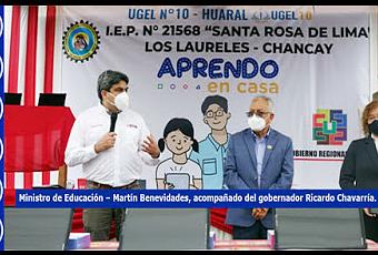 Acompañado por el gobernador regional de Lima-Provincias, Ricardo Chavarría Oria, y la alcaldesa de Chancay, Aurora Dulanto, Benavides indicó que los dispositivos tecnológicos llegarán a escolares y maestros de Cañete, Huaura, Huaral, Cajatambo, Canta, Yauyos, Oyón, Huarochirí y Barranca.