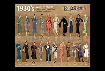 Un cartel anunciador de una muestra de indumentaria para mujeres y hombres en 1930