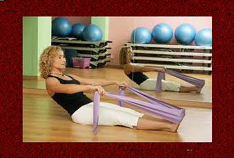 Siéntese con las piernas estiradas frente a usted ( si es principiante, flexione las rodillas). Coloque la banda elástica bajo la parte delantera de los pies y sosténgala por los extremos. Mantenga los hombros relajados.