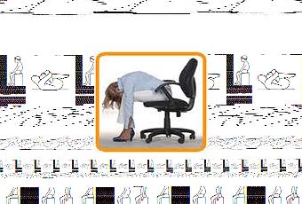 Sentarse sobre una silla y estirar ligeramente las piernas. Flexionar el tronco hacia las rodillas hasta que se apoye en las piernas, con la cabeza reposando en las rodillas y los brazos relajados, que han de tocar el suelo. Permanecer en esta posición durante un minuto.También podemos sentarnos en una pelota gigante.