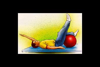 1.Acuéstese boca arriba con rodillas dobladas y pantorrillas apoyando sobre la pelota.