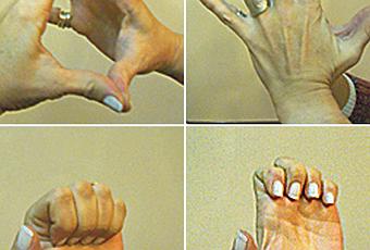 -Para flexibilizar: Juntamos la punta del dedo gordo con el índice, y abrimos y cerramos el resto de los dedos estirados cinco veces con cada mano.