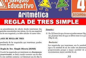 Este material educativo contiene actividades de Ejercicios Regla de Tres Simple que ayudaran a los estudiantes de Cuarto grado de Secundaria en su aprendizaje. Ahora te mencionaremos algunas de sus actividades: