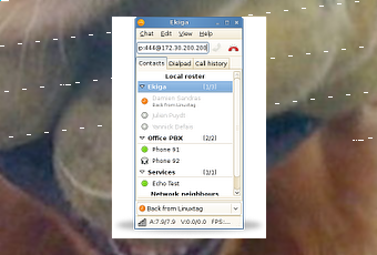 Una alternativa es Ekiga. Se trata de un viejo conocido. Software Libre que emplea el protocolo SIP para poder realizar llamadas de voz entre sus usuarios. Hasta no hace mucho era incluido por defecto en Ubuntu pero podemos instalarlo perfectamente desde el centro de software. Y si nuestros amigos usan windows, podemos recordarles que Ekiga también se encuentra disponible para el entorno de la ventana. Y si eso no fuera suficiente, podemos hacer llamadas telefónicas a cualquier parte del mundo. Por defecto el proveedor voip es Diamondcard Worldwide Communication Service pero nada nos impide contratar servicios con otros operadores. Recordemos Software Libre es libertad de elegir.Fuente: http://www.ekiga.net/