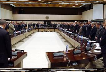 El Consejo del Atlántico Norte, reunido en la sede de la OTAN en Bruselas, observa un minuto de silencio en memoria de las víctimas de los atentados de Madrid.