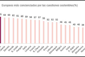 Estos datos sitúan a los españoles entre los europeos más concienciados con las cuestiones medioambientales, solo superados por sus vecinos lusos (72%) y seguidos muy de cerca por polacos y estonios, con un 63% de su población preocupada por estos asuntos.