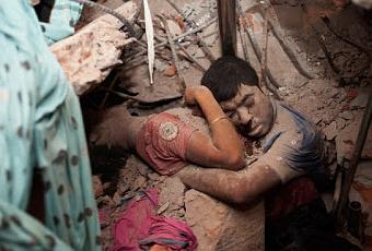 INDIA.-Un imagen difundida por la revista TIME y tomada por Taslima Akhter del derrumbe hace dos semanas en una fábrica de textiles de Bangladesh, se ha convertido en el verdadero icono del dolor por el trágico suceso. En la fotografía, que ha sido bautizada como “el abrazo final”, se puede ver a dos personas abrazadas sepultadas por los escombros. Shahidul Alam, fotógrafo bangladeshí, escritor y fundador de Pathshala, un instituto de fotografía, comentó sobre la imagen que “su ternura se eleva por encima de los escombros para tocarnos donde somos más vulnerables”. Más allá de la imagen y de sus connotaciones evocadoras, la catástrofe puso en evidencia las malas condiciones laborales y de seguridad que sufren los trabajadores de fábricas textiles en el país asiático que abastecen a multinacionales occidentales. Un toque de atención sobre aquello que desde occidente compramos y apenas valoramos. Quién sabe, puede que alguno de nosotros llevemos puesto algo fabricado por alguna de esas dos personas.