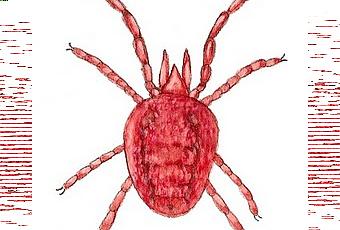 Vamos adentrándonos en el otoño, y en nuestro monte, sobre la tierra empapada, entre la hojarasca, crecen setas y pululan seres diminutos, como los colémbolos saltarines. Pese a su tamaño minúsculo, los colémbolos no escapan a una de las reglas no escritas para los animales, el comer y ser comido. Igual que los antílopes son cazados por el leopardo y las focas por el oso polar, los colémbolos tienen a su propio gran depredador: el ácaro rojo de terciopelo (arriba). Este arácnido, de aspecto verdaderamente aterciopelado bajo la lupa, que con su color rojo advierte de su posible toxicidad, apenas mide tres milímetros, apenas puede corretear sobre sus largas patas, y su vista es tan mala que necesita tantear su camino constantemente, usando para ello su largo par de patas delanteras como un ciego con dos bastones, pero en su mundo el ácaro rojo ocupa una posición ecológica similar a la de un león o un águila - salvando diferencias tales como que el ácaro también come huevos de insecto. Sin embargo, los animales tan pequeños como este ácaro tienen abiertas muchas más posibilidades que los grandes vertebrados, maneras de vivir que serían imposibles para aves y mamíferos. Lo podemos comprobar una tarde de agosto, cogiendo algunos saltamontes y examinando sus alas. No será raro encontrarlas plagadas de motas rojizas, que a través de la lupa revelarán ser larvas de ácaro, fijadas por la boca a las venas de las alas del saltamontes, alimentándose del fluido que las recorre, la hemolinfa. A su manera, los insectos también albergan "piojos". Cuando esas larvas crecen, después de mucho saltar a bordo de su hospedador, se sueltan y se transforman en el animal del dibujo, similar a una araña escarlata pero con ese aire primitivo de los ácaros. No en vano los ácaros se cuentan entre los primeros animales que se adaptaron a la vida en tierra firme, hace más de 400 millones de años. Mucho tiempo después, la evolución produjo a los saltamontes, y sólo entonces pudieron aparecer, a su vez, los ácaros rojos de terciopelo. Lo caminos de la evolución son largos y tortuosos, pero los de la fauna diminuta pueden ser asombrosamente distintos de los que han seguido los grandes animales.