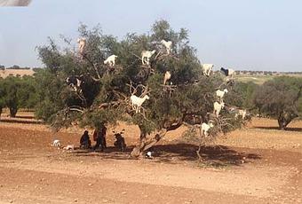 El caso es que cuando íbamos de camino a Essaouira el guía empezó a contarnos, que no se conocían sus propiedades hasta hace relativamente poco, porque las cabras de la zona se comían los frutos y la gente sólo encontraba las cáscaras. Al parecer, al ser un árbol con muchos pinchos en sus ramas, los pastores nunca se habían interesado por ellos, pero las cabras si, y de hecho parece que hasta se subían a sus ramas para alimentarse (imag01). Y hoy en día podemos verlas aún encaramadas en mitad de la carretera, aunque es hoy día una atracción turística.