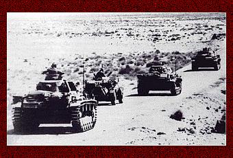 Los panzer alemanes, en el desierto de Libia.La realidad es que los británicos han retirado de África al grueso de las experimentadas tropas de Richard O’Connor para enviarlas a Grecia y dejado al General Philip Neame al mando de la defensa de Libia con la inexperta 2ª División Blindada, la novata 9ª División de Infantería Australiana y una Brigada India. Los tanques de que disponen los británicos son en su mayoría anticuados y se encuentran muy desgastados. En conjunto, las unidades británicas no cuentan con la experiencia ni la profesionalidad con que contaban los veteranos de O’Connor. Por su parte, Rommel cuenta con una división alemana, la 5ª Ligera, que dispone de una poderosa fuerza de tanques con unas 150 máquinas, y con parte de cuatro divisiones italianas de infantería. En total, Rommel cuenta tan sólo con 9.300 soldados alemanes y 37.000 italianos apoyados por una columna de suministro dotada de 7.000 camiones.