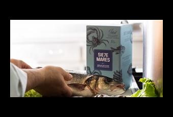El agua de mar “SIETE MARES” se extrae en pleno corazón de las Rías Baixas, a más de 400 metros de la costa entre la Illa de Sálvora y el cabo de San Vicente do Mar, gozando de una pureza y riqueza únicas. Después de un proceso de filtración y esterilización, se presenta, como podéis ver en la imagen, en una caja que tiene en su interior una bolsa de 3 litros con un dispensador, para conservar mejor el producto y facilitar su uso.