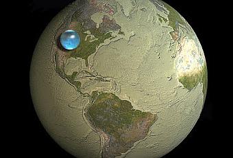 A simple vista da la impresión que la cantidad de agua es gigantesca, en realidad si es gigantesca pero no tanto como la mayoría de nosotros pudiera imaginarse, a pesar que el 70% de la superficie del planeta se encuentra bajo las aguas. A lo que también abría que sumarle el agua subterránea, lagos, ríos, la atmósfera y los casquetes polares.El Servicio geológico de los Estados Unidos (USGS) sumo el volumen de agua existente y lo transformo en una esfera de 1390 km de diámetro. Son muchos kilómetros, pero si comparamos la tierra con esta esfera nuestra perspectiva cambia ya que de apreciar los océanos en un plano, lo que nos da la apariencia de una cantidad de agua mucho mayor a la que es en realidad, pasamos a ver el volumen de agua en una esfera tridimensional.El portal http://www.iagua.es creo unas imágenes comparativas de la esfera de agua y la Tierra, desglosandolas en esferas más pequeñas de agua dulce y liquida ya que incluyeron los casquetes polares, Groenlandia y todo el hielo que existe (273 kilómetros de diámetro) y otra con el agua de los ríos y lagos (56 kilómetros de diámetro). La pregunta que nos queda es: ¿La tierra tiene poca o mucha agua?Nuestro planeta tiene el agua exacta para nosotros y toda la vida en ella ya que hemos evolucionado en parte a raíz de la cantidad de agua que existe. Si hubiera más agua la vida en el planeta seria totalmente diferente o no habría vida y lo mismo si la cantidad de agua fuera menor.