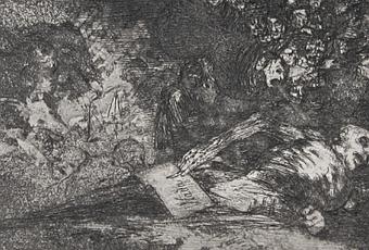 En el cuarto de trabajo de Baudelaire se sabe que había clavada la prueba de una de esas aguafuertes de Goya en la que garabatea la aspiración al ideal y la reacción contra un mundo de escuerzos. No importa cuál sea el grabado elegido, porque bajo cualquiera de los “Disparates” goyescos se pudo declamar la poesía bodeleriana con sus intentos de fijar las pesadillas del camino, con su vago arredro ante lo monstruoso, con su queja ante la insidia de la mujer y su Celestina.