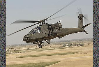 El AH-64 Apache es un helicóptero militar de ataque de origen estadounidense. Cuenta con rotores principal y de cola de cuatro palas. Se trata de un aparato bimotor, biplaza en tándem, y diseñado para misiones de ataque contra carro, asalto, escolta y caza-helicóptero, con capacidad operativa todo tiempo y día-noche.El armamento fijo de este helicóptero es un cañón automático M230 de 30 mm. También está equipado con una combinación de misiles antitanque AGM-114 Hellfire y lanzacohetes Hydra 70 en los cuatro puntos de anclaje de sus dos estructuras alares; y además, puede portar misiles antiaéreos AIM-92 Stinger o AIM-9 Sidewinder en los extremos de las alas.El Apache fue diseñado por Hughes Helicopters en respuesta al programa "Helicóptero de Ataque Avanzado" (en inglés: AAH o Advanced Attack Helicopter) del Ejército de los Estados Unidos. Posteriormente McDonnell Douglas adquirió Hughes Helicopters y continuó el desarrollo del AH-64 obteniendo como resultado el AH-64D Apache Longbow, actualmente producido por Boeing Integrated Defense Systems. El AH-64 es el principal helicóptero de ataque del Ejército estadounidense, y el sucesor del AH-1 Cobra. Con Estados Unidos ha entrado en acción en la Invasión estadounidense de Panamá de 1989, en la Guerra del Golfo, en la Guerra en Afganistán de 2001 y en la Invasión de Iraq en 2003.Fuente: Wikipedia