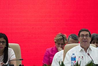 “El vertiginoso desarrollo de los recientes acontecimientos y las amenazas a los postulados de la Proclama de Paz de América Latina y el Caribe, firmada en esta misma ciudad, hace tres años, subraya la importancia de la declaración de Caracas y llena de nuevo sentido y urgencia a este Consejo, para intercambiar sobre lo que sucede, particularmente las amenazas contra la Revolución Bolivariana y el papel de la Alianza”, dijo el ministro de Relaciones Exteriores de Cuba.