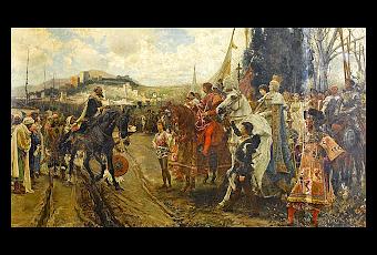 2 de enero de 1492: Boabdil "el chico", último rey de la dinastía nazarí, entrega las llaves de Granada a los Reyes Católicos. Se pone fin a 770 años de Reconquista. Toda la península ibérica vuelve a estar en manos de soberanos católicos. El hecho hizo casi olvidar la pérdida de Constantinopla unos 40 años antes y fue celebrado en toda la Cristiandad.
