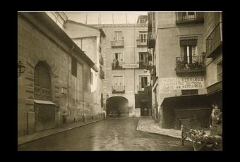 Tomada desde la perspectiva que nos proporciona la Calle de Bordadores, a mano izquierda el gran pórtico corresponde a la parte trasera de la Iglesia de San Ginés y de frente, ese melancólico arco que hace las veces de cochera hoy está colmado de terrazas y personas. La pena es que hoy, aquellos simpáticos anuncios que cuelgan de las fachadas se han visto sustituidos por grafitis que simplemente ensucian una bonita postal.