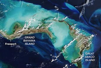 La imagen de arriba proporciona una visión amplia de la devastación en el norte de Bahamas, que fue azotada durante casi 40 horas por uno de los huracanes más fuertes del Atlántico en los registros meteorológicos modernos. El espectroradiómetro de imágenes de resolución moderada (MODIS) a borde del satélite Terra de la NASA, adquirió estas imágenes en color natural de la isla Gran Ábaco y Gran Bahama el 17 de agosto (abajo) y el 7 de septiembre de 2019 (arriba). Observe el cambio en el color del paisaje de la isla de verde a marrón, así como el brillo de los arrecifes y bancos de arena alrededor de la isla debido a los sedimentos agitados por la tormenta. El dorado generalizado de Gran Ábaco y Gran Bahama podría tener varias causas. La tormenta arrancó y destruyó muchos árboles, y algunas especies de vegetación. La pérdida de vegetación frondosa le daría al satélite una vista de más terreno descubierto. Otra posibilidad es que la niebla salina azotada por el huracán cubrió y desecó algunas hojas mientras aún estaban en los árboles. Funcionarios del gobierno de las Bahamas han reportado al menos 40 muertes, según las noticias, aunque se espera que el número aumente después de que se completen las operaciones de búsqueda y rescate. Cientos de personas están desaparecidas y se estima que 70,000 están sin hogar. Pocas áreas tienen energía eléctrica o agua potable. Los suministros de ayuda nacional e internacional recién comienzan a llegar a la zona, aunque el transporte es difícil. En el otro extremo de la tormenta, Dorian trajo vientos destructivos y olas a 2400 kilómetros más al norte. Después de la transición a un ciclón extratropical, la tormenta tocó tierra en Nueva Escocia en la noche del 7 de septiembre con fuerza de categoría 2. La velocidad máxima del viento se acercó a las 100 millas (160 kilómetros por hora) en la costa. Según Weather Underground, los vientos con fuerza de huracán se extendieron a 115 millas (185 kilómetros) desde el centro de la tormenta, y los vientos con fuerza de tormenta tropical se extendieron a 300 millas (500 kilómetros).
