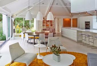 En el interior, la apertura de espacios, los amplios ventanales correderos y la elección de colores, siendo el blanco protagonista, junto con pinceladas de naranja y gris