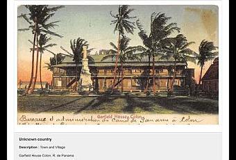 Obsérvese el antiguo edificio del Hotel Washington de la Ciudad de Colón. Construido por la Istmian Panamá Canal Company norteamericana en 1904 para albergar a huéspedes especiales. Se observa el monumento a los Zapadores del Ferrocarril de Panamá (Chunney, Aspinwall, Totten). Hoy se ubica este monumento en la entrada de la ciudad de Colón.