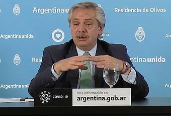 Tras explicar mediante gráficos la evolución de la curva de contagios de coronavirus en el país y otras estadísticas vinculadas a la pandemia, con el objetivo de demostrar que el aislamiento social es la mejor manera de prevenir el contagio, el jefe de Estado volvió a tomar asiento para anunciar las medidas concretas respecto a la cuarentena obligatoria y aseguró que en algunas zonas del Interior del país tendrá lugar cierta flexibilización.