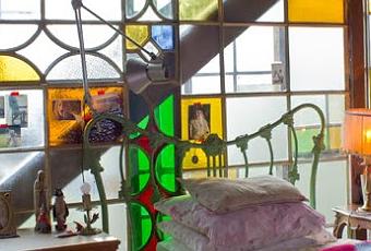 Y también, quien se las ingenia de otras maneras para conseguir estos miradores de ensueño, sin necesidad de obras ni grandes presupuestos. Vidrieras colgadas delante de ventanales, como un elemento decorativo más, de deslumbrantes efectos.