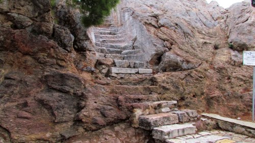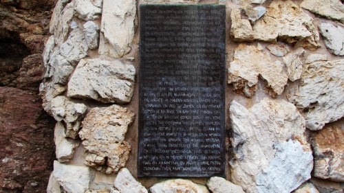 Desde la Acrópolis se tiene una visión de la colina del areópago. Al bajar por los senderos se llega hasta una placa de bronce en la que están escritas, por lo menos es que me dijeron pues está en griego, las palabras pronunciadas por Pablo en esa ocasión.