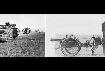 Fue espectacular la entrada en escena de los tanques. muy rudimentarios al comienzo, una de las grandes novedades en el armamento. El primer prototipo fue el británico Mark-1 que debutó en la batalla del Somme. Un invento muy importante fue la torreta giratoria. Su uso masivo no llegó hasta 1917.