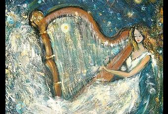 Soy la lápida de un arpa, de la música fantasma de aquel tiempo que se fue. Tengo mi hogar en la iglesia en su suelo hecho de piedra bajo un coro de madera. Me acariciaron doncellas para trenzar con sus manos la nostalgia de la espera. Con sonidos de aires celtas invoqué colinas verdes, y murmullos de torrentes. Recité cantos de héroes, leyendas de antiguos reyes y frescos romances de ayer. El rasgueo de las flechas se tensó sobre mis cuerdas en el fragor de la guerra. Fui un espíritu de viento de lluvia fundida en lagos y de lágrimas de adiós. Soy misterio, soy recuerdos, soy olvido y oración. En mi tumba duermen sueños y viejas canciones de amor.