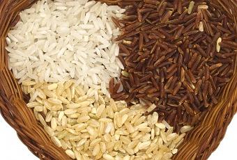 A mayor blancura del arroz mayor carga glucémica tendrá y viceversa. En esta imagen podemos arroz blanco, integral y salvaje, este último conserva toda su cascarilla. Todos los arroces, incluso con cáscara, tienen una carga glucémica alta, por eso es conveniente consumirlos mezclados con otros alimentos, como hortalizas, para que nuestro organismo absorba lentamente la glucosa que nos aportan los almidones de este cereal.